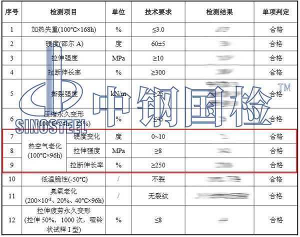 中鋼國檢深耕行業(yè)近40年,有著非常豐富的橡膠檢測經驗,下面就是某施工單位委托中鋼國檢做的橡膠檢測,其中委托了13個檢測項目,就包括橡膠老化檢測,詳細內容如下: