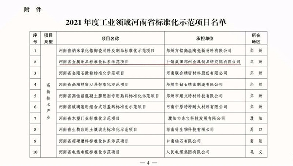 榮獲河南省2021年度工業(yè)領(lǐng)域標(biāo)準(zhǔn)化示范項(xiàng)目